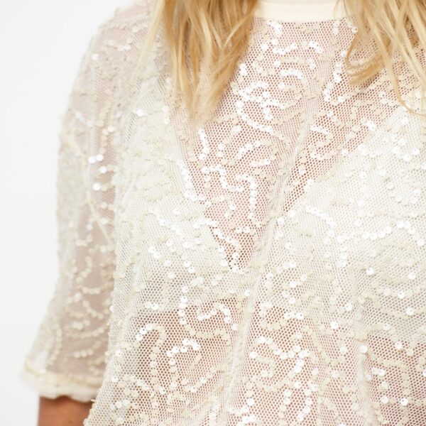 Zaira Sequin Net Top – Creme