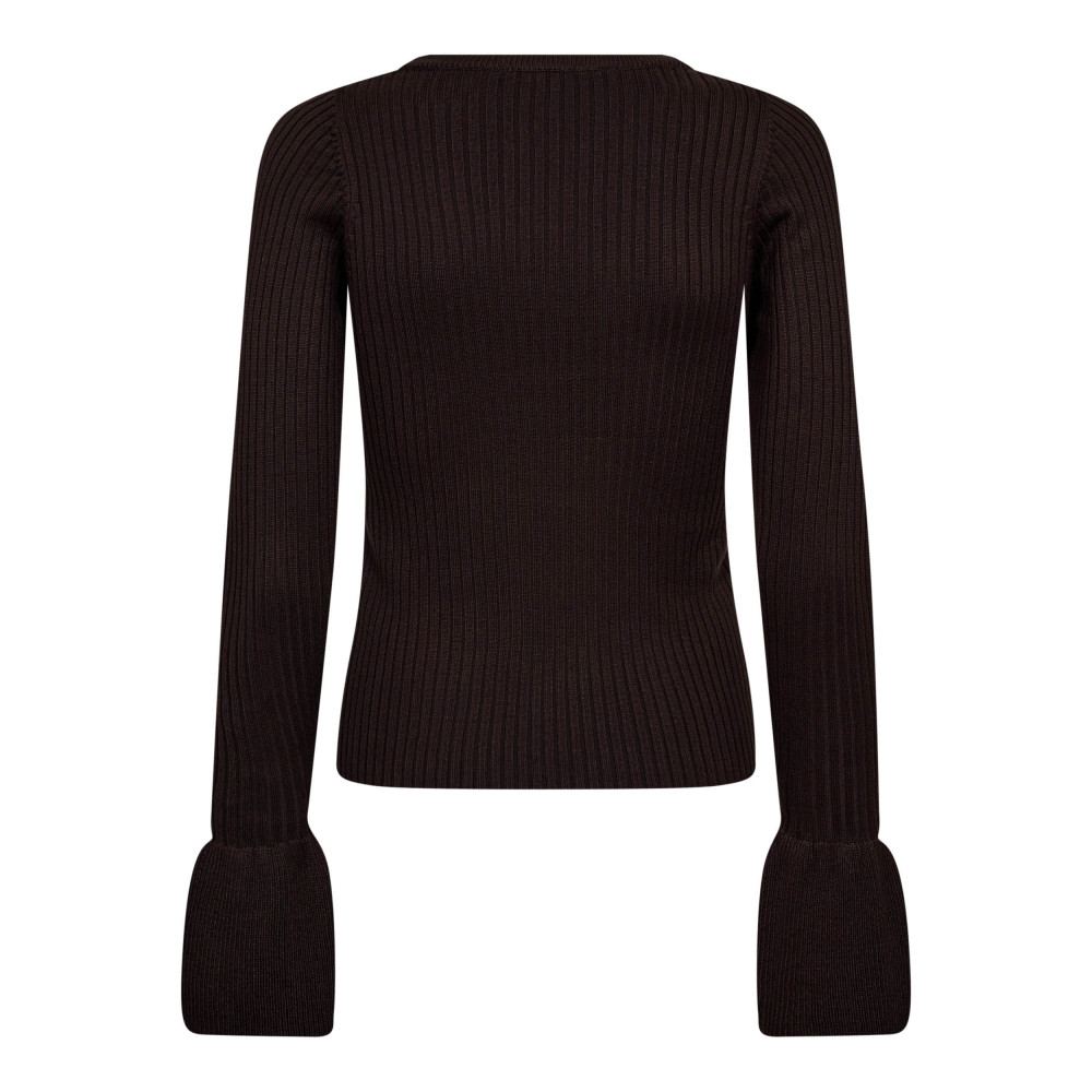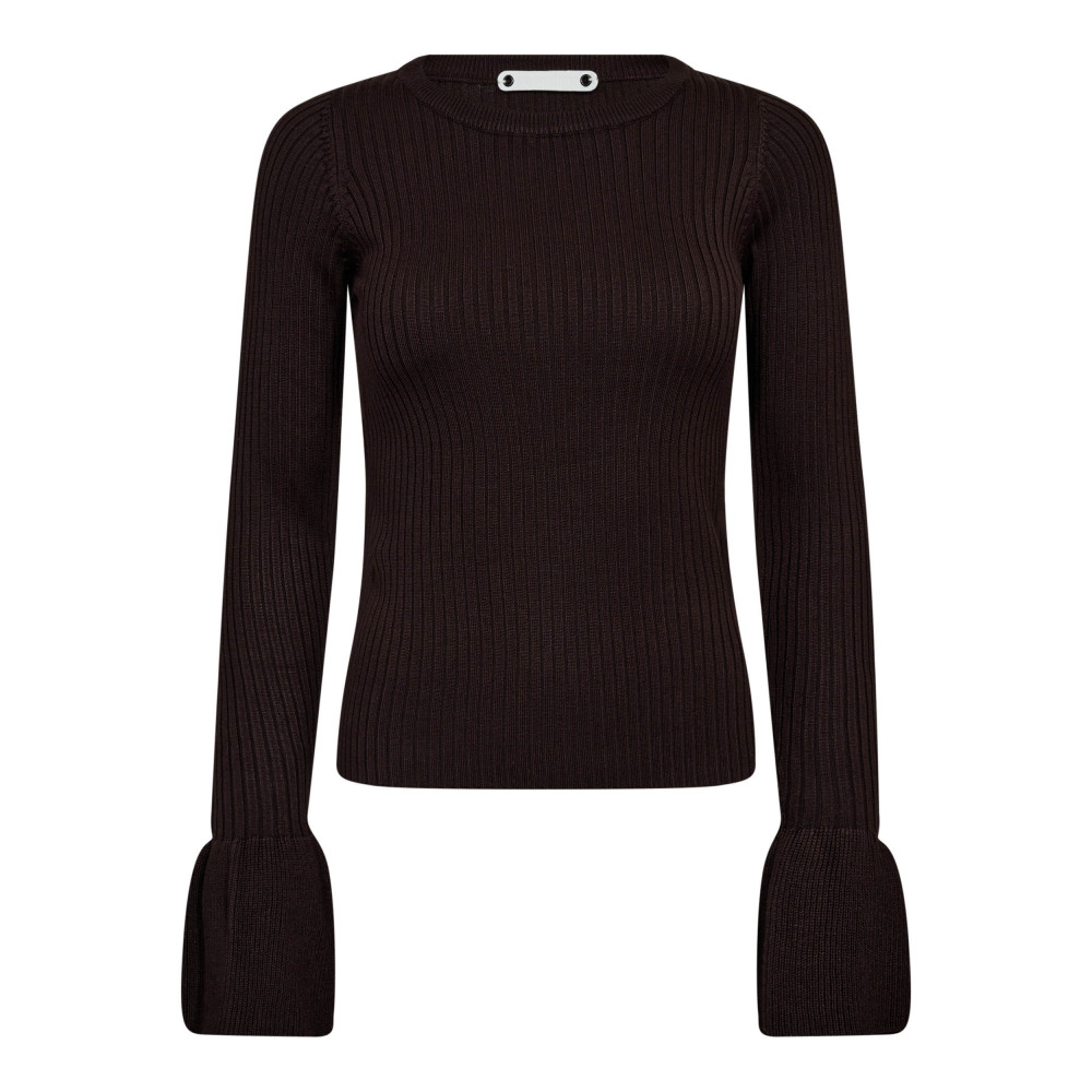 Aangesloten knit met ronde hals en lange mouwen met wijde manchetten.