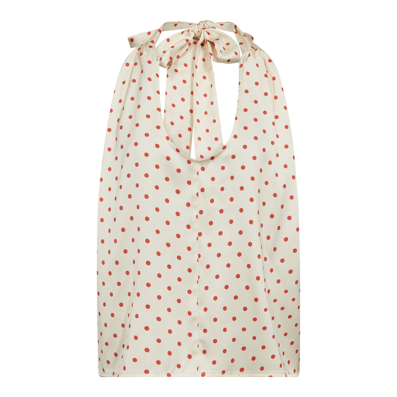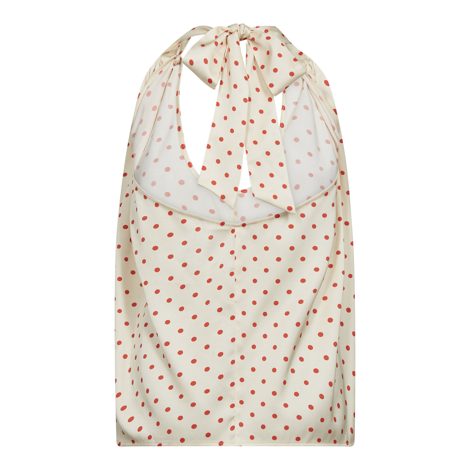 Asymmetrische top in de kleur ecru met een dotje in flame.