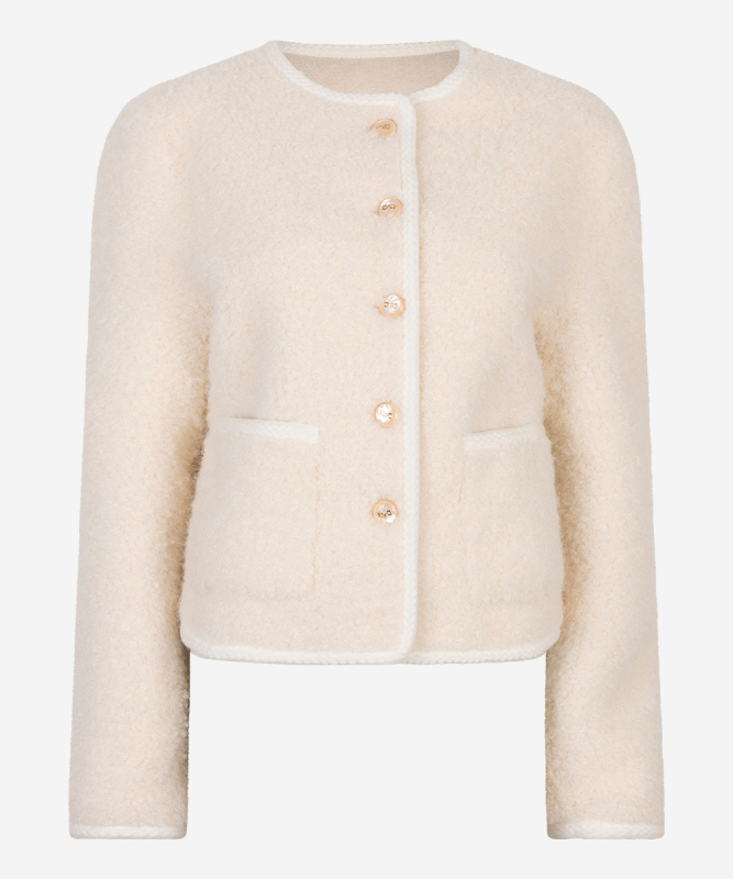 De Celia in de kleur Buttercream is een stijlvolle tussenjas met rechte pasvorm, gemaakt van faux fur teddy stof. De Celia kan ook gemakkelijk gedragen worden als vestje. De gouden knopen maken de Celia helemaal af en fashionable. Stylingtip: Combineer de Celia met een toffe Denim.