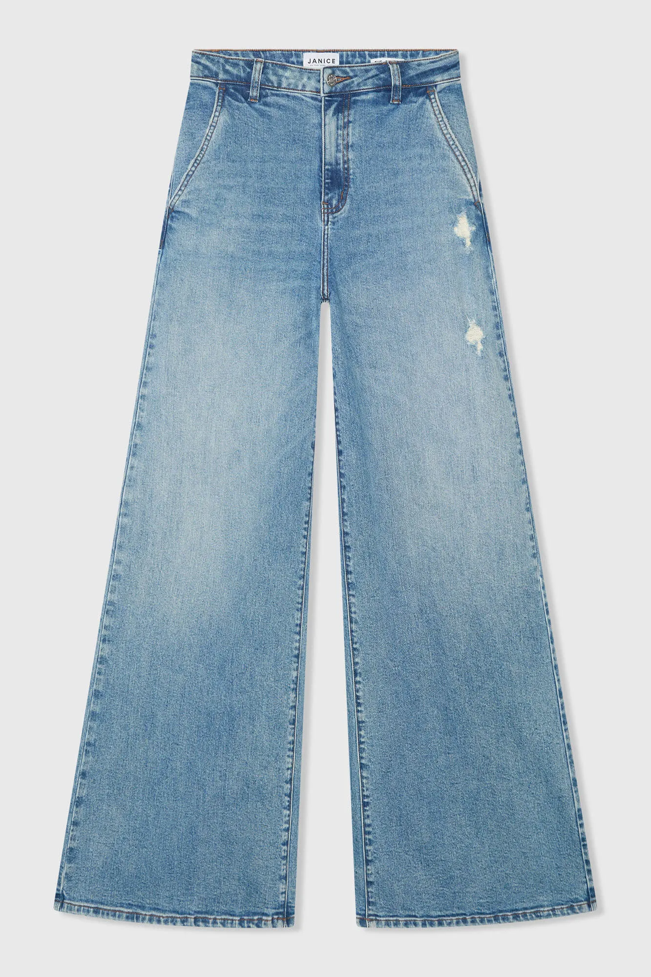 De Dexter Jeans van Janice is een wijd model. Hij valt high rise en bevat stretch.