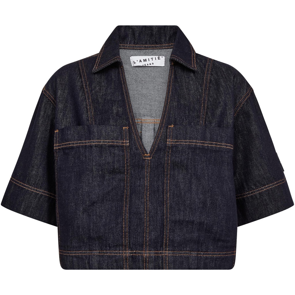 loose fit denim top met v-hals