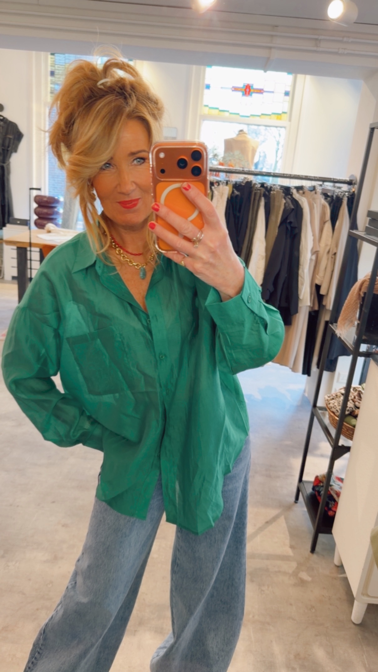 Semi transparante lange blouse.