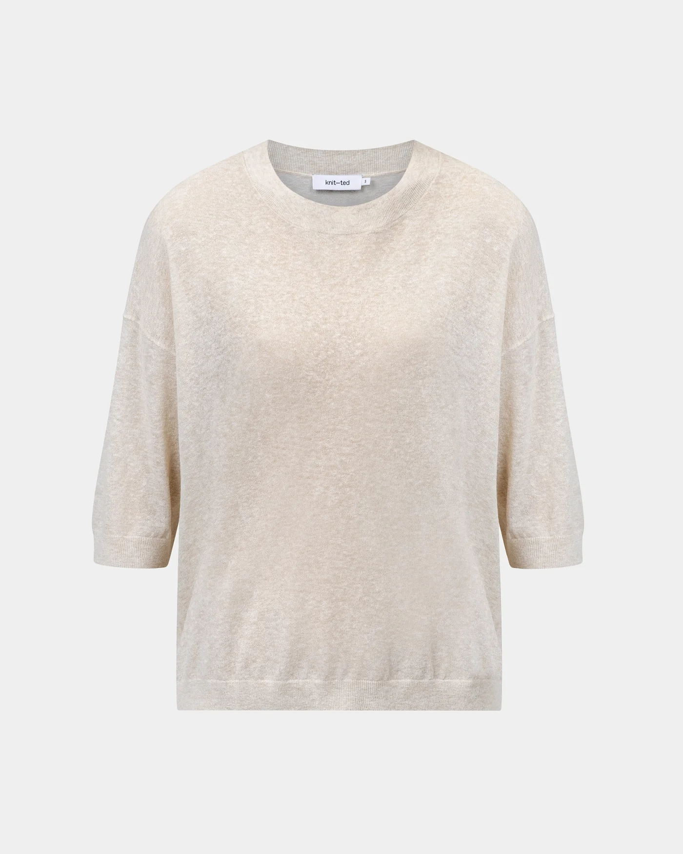 Fanes is losjes en licht, met een pasvorm die soepel met je meebeweegt. Haar mouwen met ribgebreide uiteinden vallen tot net boven de elleboog en de verlaagde schouderlijn zorgt voor een ontspannen silhouet. Dankzij de subtiele doorschijnendheid geef je eenvoudig een stijlvolle twist aan je look: met een ton-sur-ton top eronder, of juist iets contrasterends.