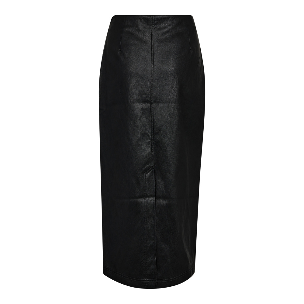 Deze Zwarte midi-rok van Co’Couture is een echte eye-catcher die je eindeloos kunt combineren. Het leather-look materiaal en de strakke lijnen geven een bold, modern gevoel, terwijl de rechte fit juist supervrouwelijk staat.