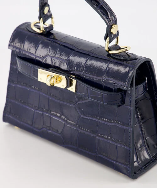 Grace Croco Leather Bag – Navy