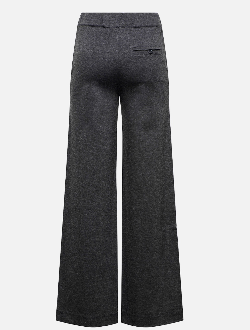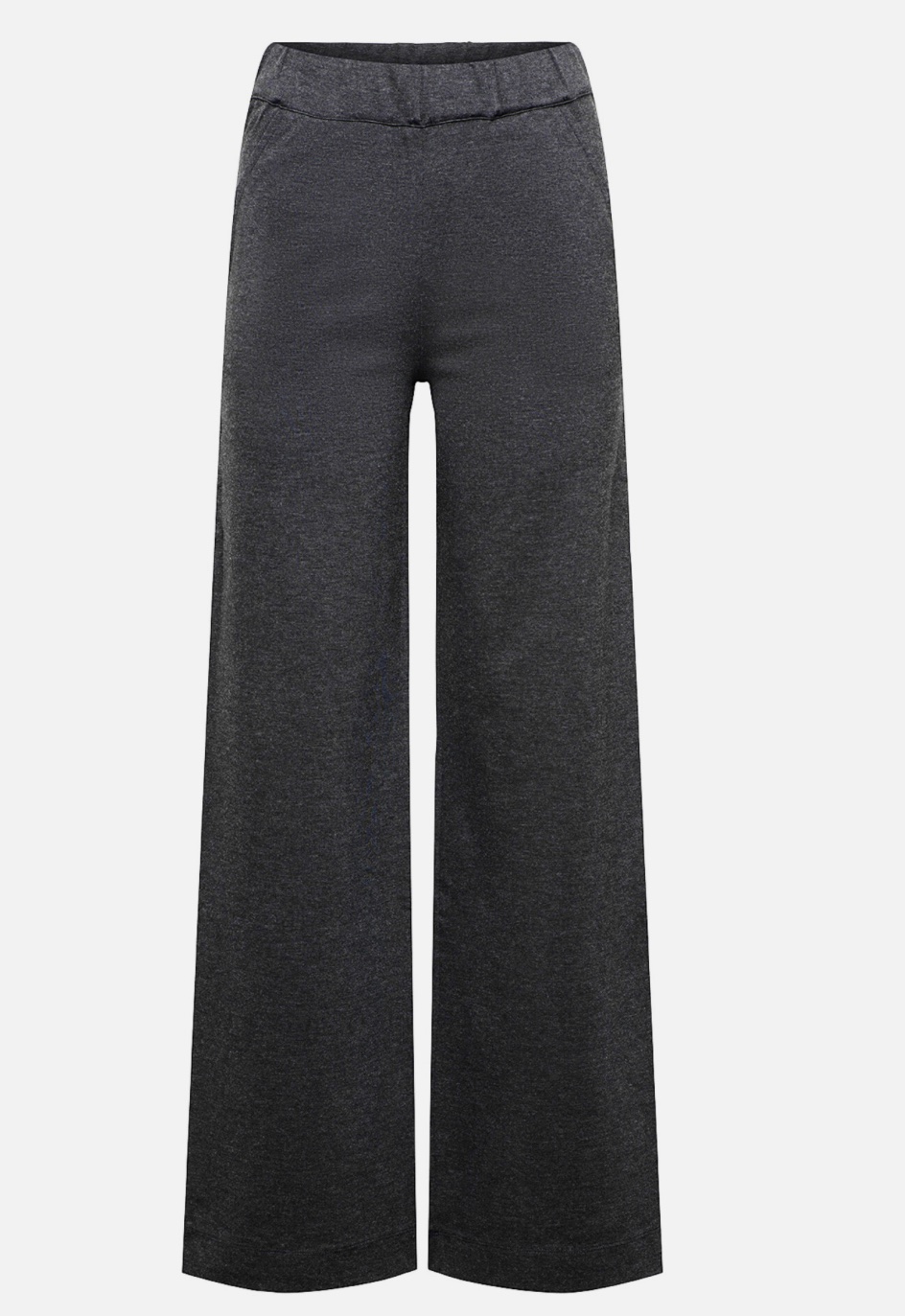 Comfortabele broek met rechte pijpen en elastiek in de taille gemaakt van een hele sterke, goed in model blijvende jersey. Steekzakken en paspelzak achter.
