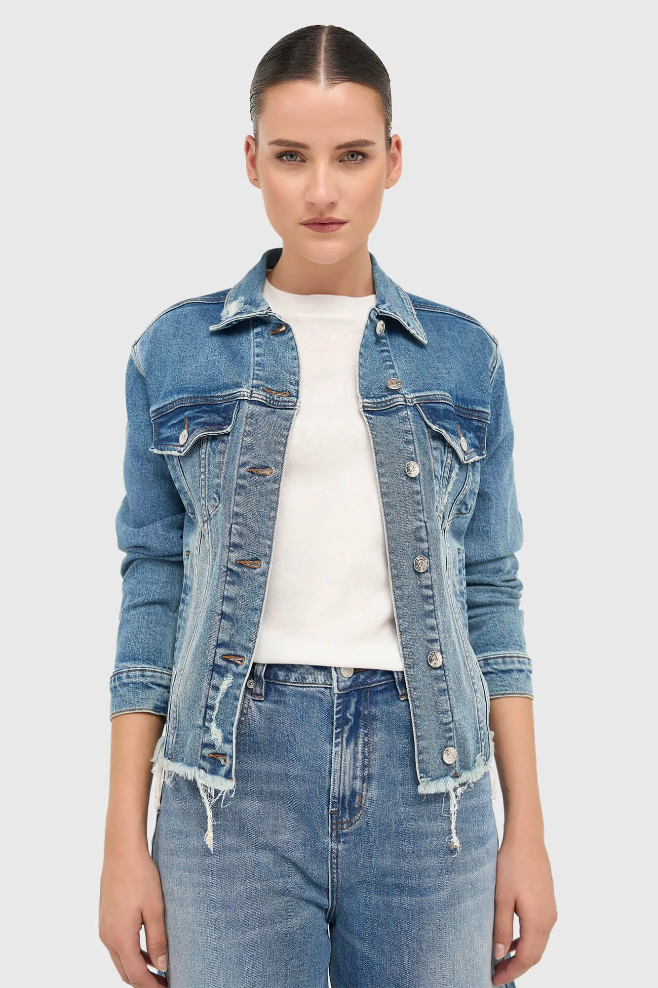 De denim spijkerjack stretch dames GREGORY blauw 379 van JANICE is een moderne interpretatie van een klassieke dames jas. Het ontwerp is gemaakt van een zorgvuldig gekozen denimkwaliteit met 94% katoen, 5% polyester en 1% spandex, waardoor het jack een prettige stretch heeft en comfortabel aansluit. De blauwe kleur geeft dit denim ontwerp een tijdloze uitstraling die past binnen een garderobe vol stijlvolle essentials. Door de opengewerkte boord aan de onderzijde valt het jack net iets langer voor een eigentijdse look die subtiel opvalt.