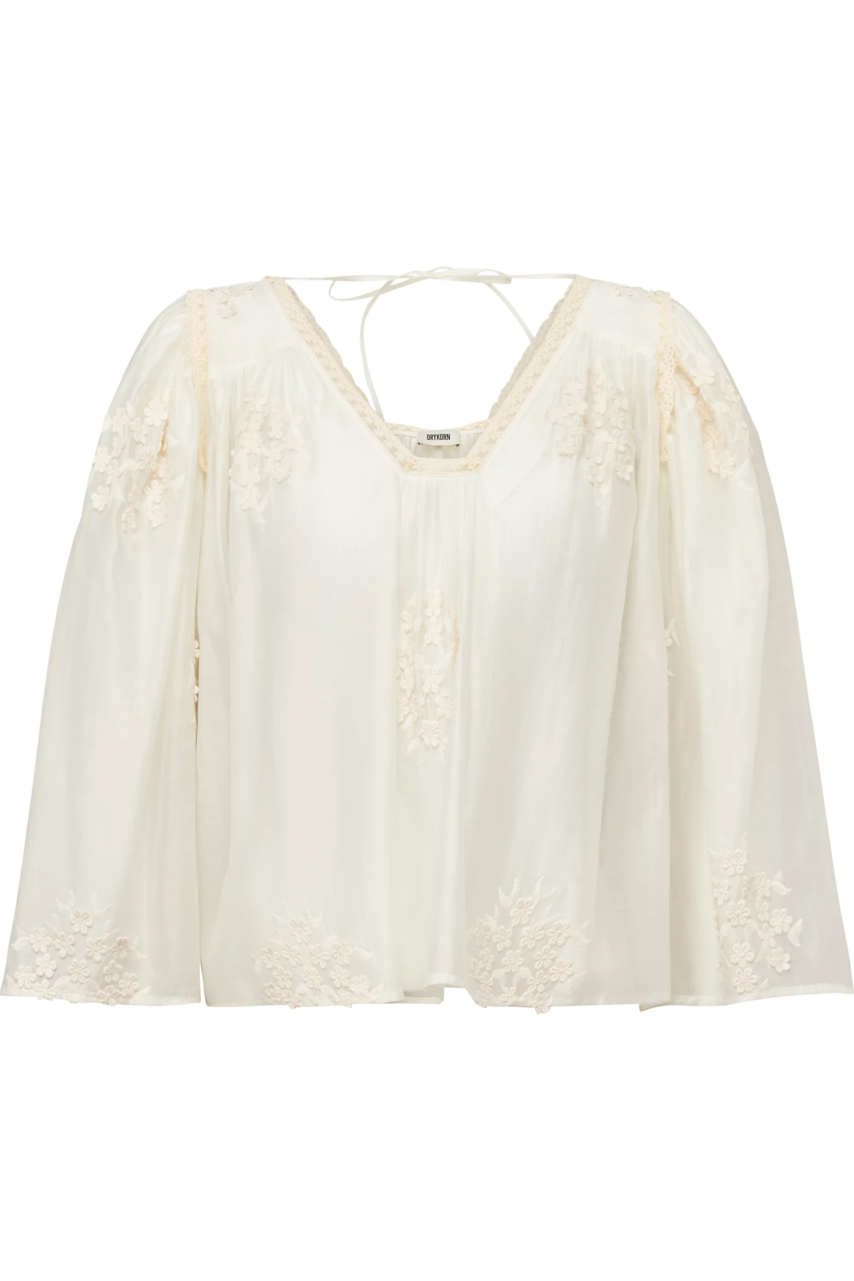 ISMARA is een elegante babydoll-tuniekblouse in een relaxte pasvorm met lange mouwen en klassieke lengte. De kraagloze tuniek is gevoerd met fijne bloemborduursels, die ook de mouwen en zoom sieren. De lichte viscosemix van geweven voile geeft de bovenkant een transparante uitstraling en een droge, aangename uitstraling.