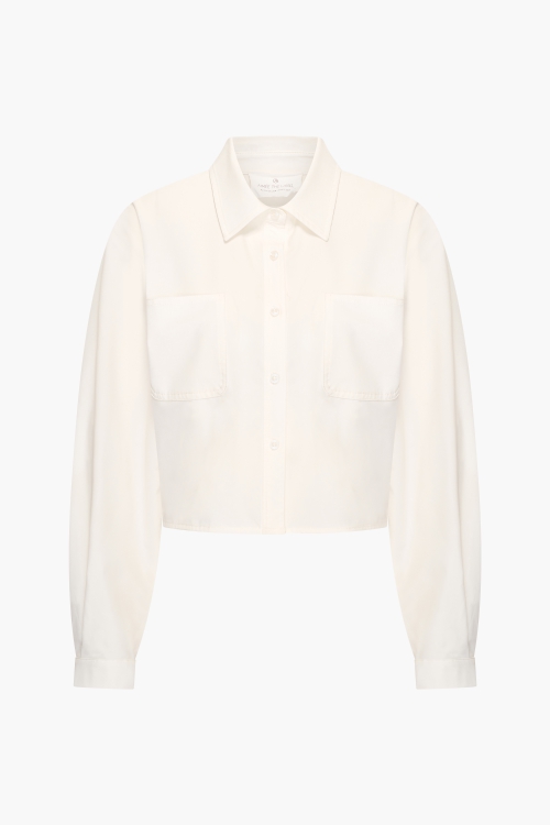 De Louen blouse in offwhite is een verfijnde basic met een moderne twist. Het nette kraagje en de zakken op de voorkant zorgen voor een subtiele speelsheid, terwijl de iets kortere lengte een eigentijdse uitstraling geeft.