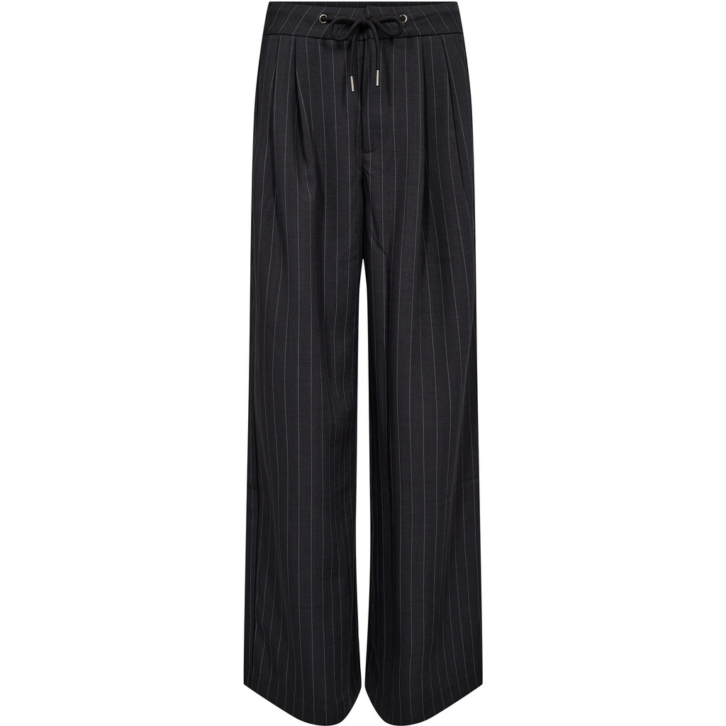 Wide leg pantalon in grijs met Pinstripe, bandplooi en koortje.