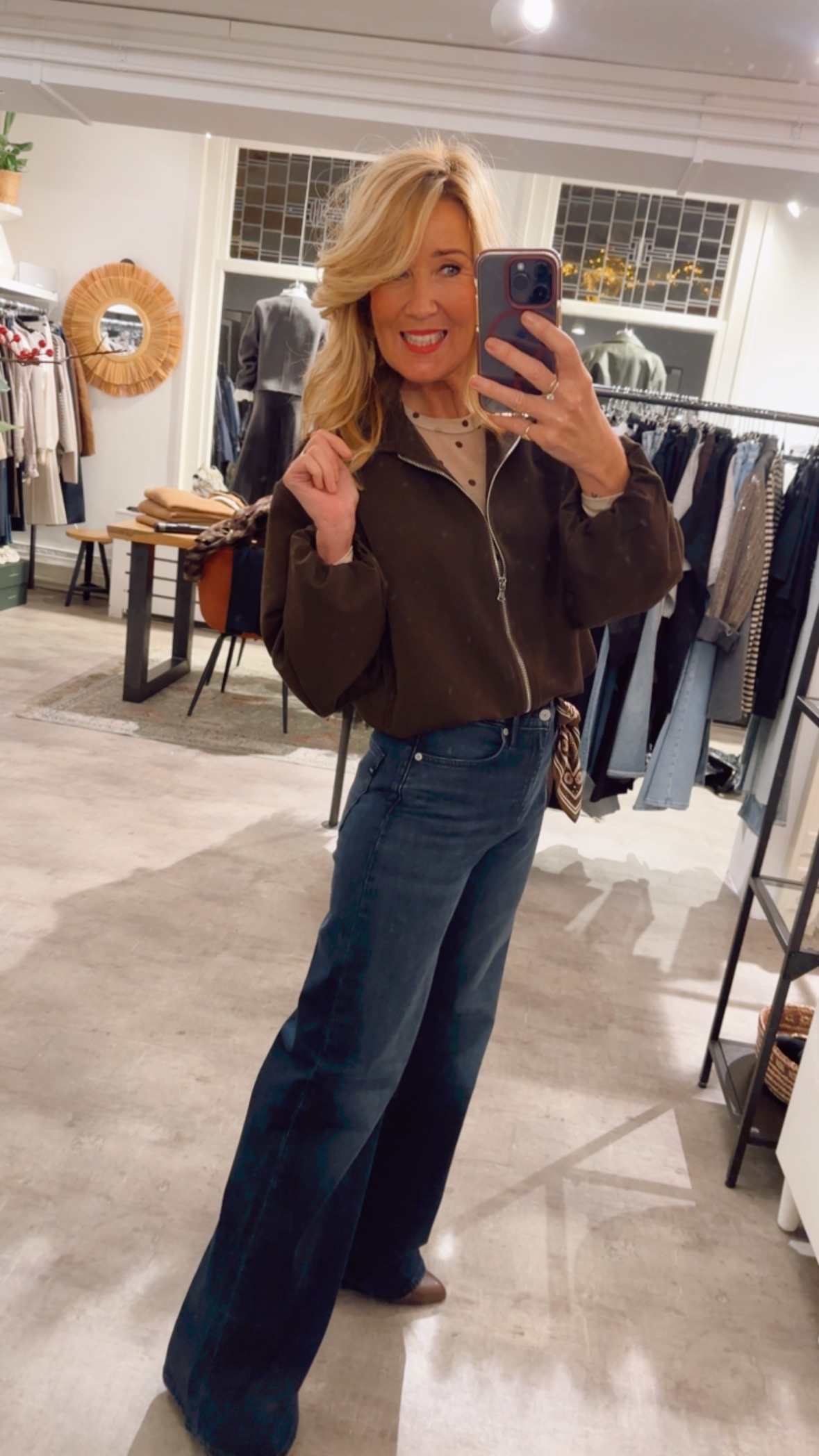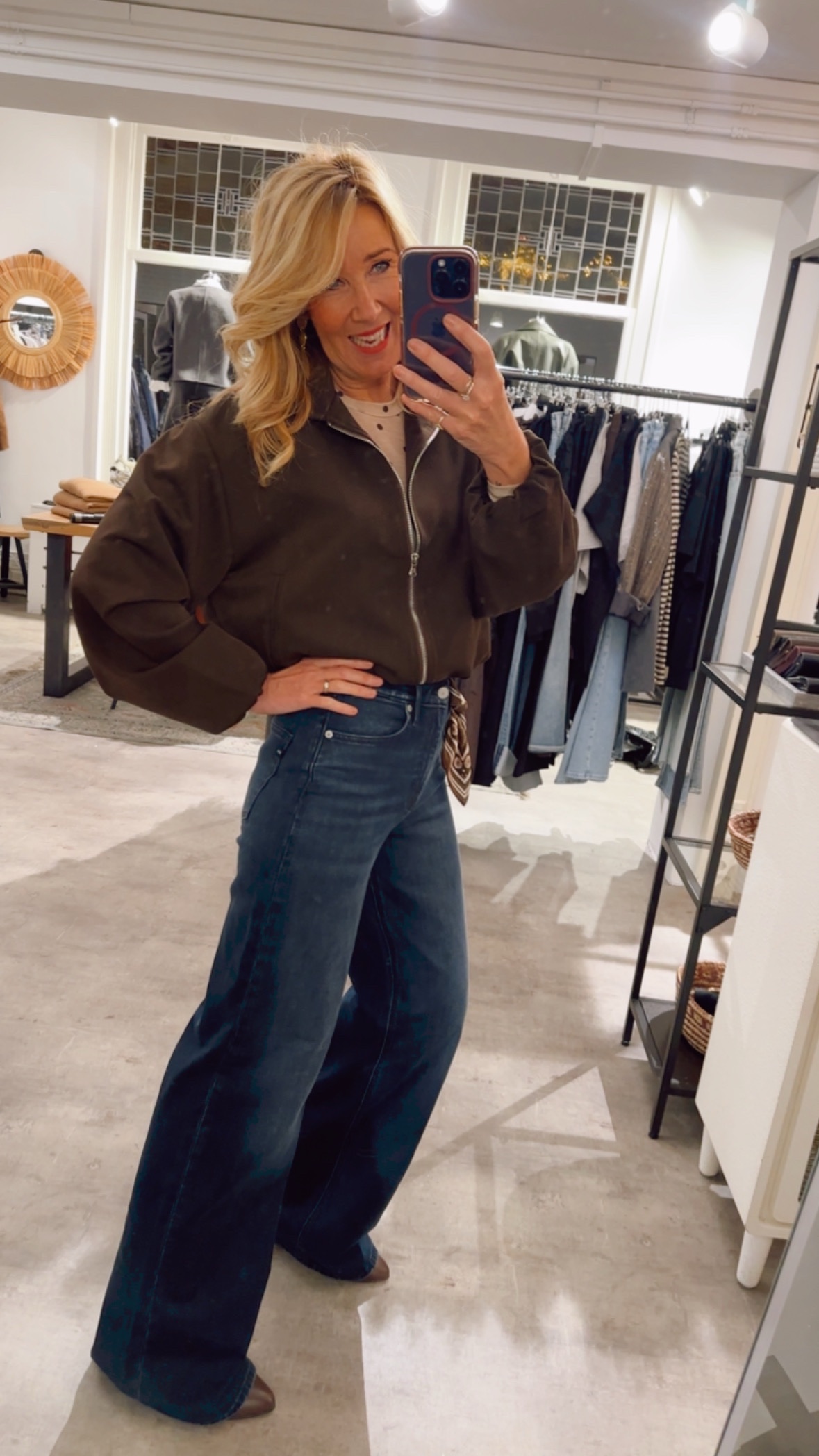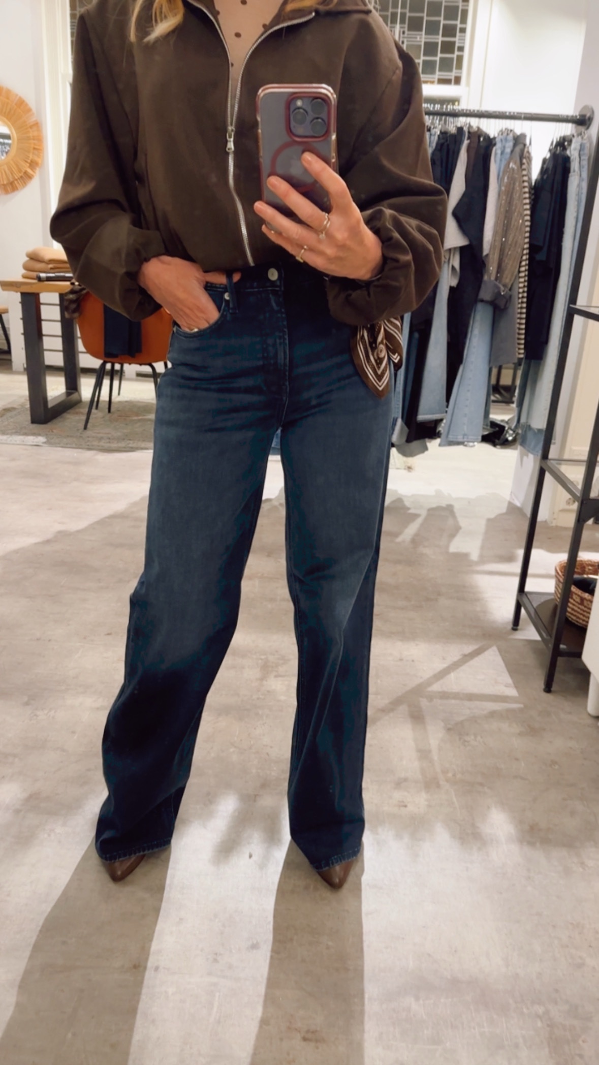 De nieuwe wide flare jeans van Denham. Met een high-rise taille en een vormgevende silhouet die uitloopt in een brede flare.
