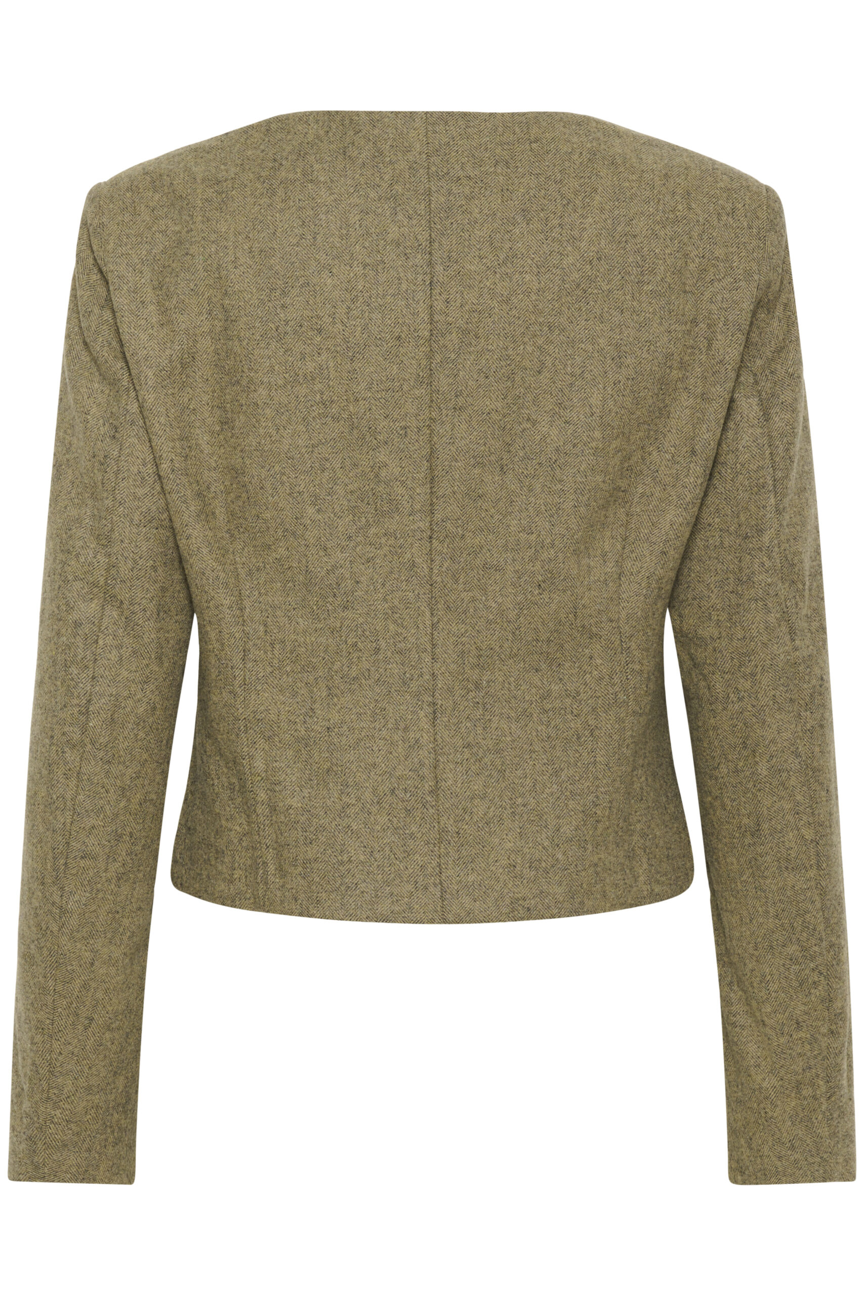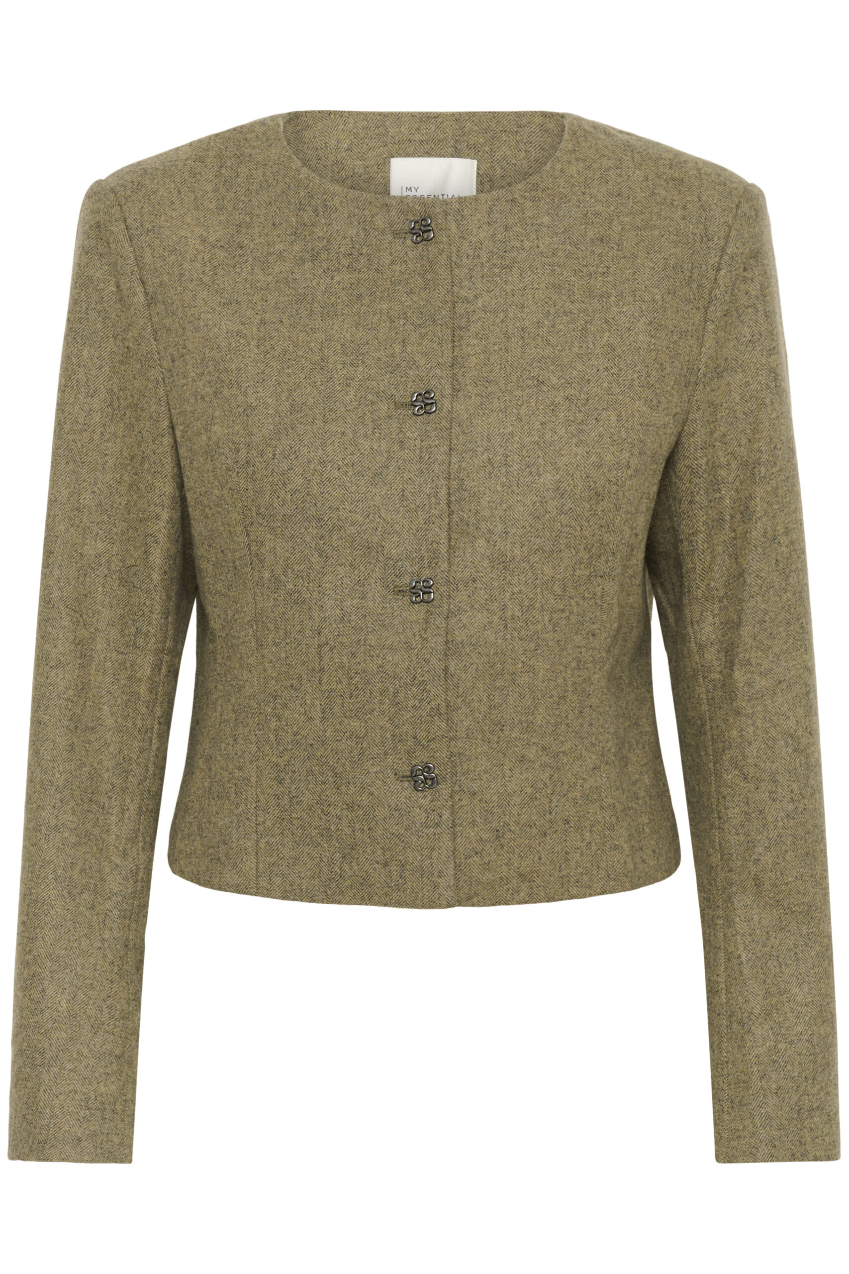 Kort tweed jasje met knoopsluiting in gemêleerd groen.