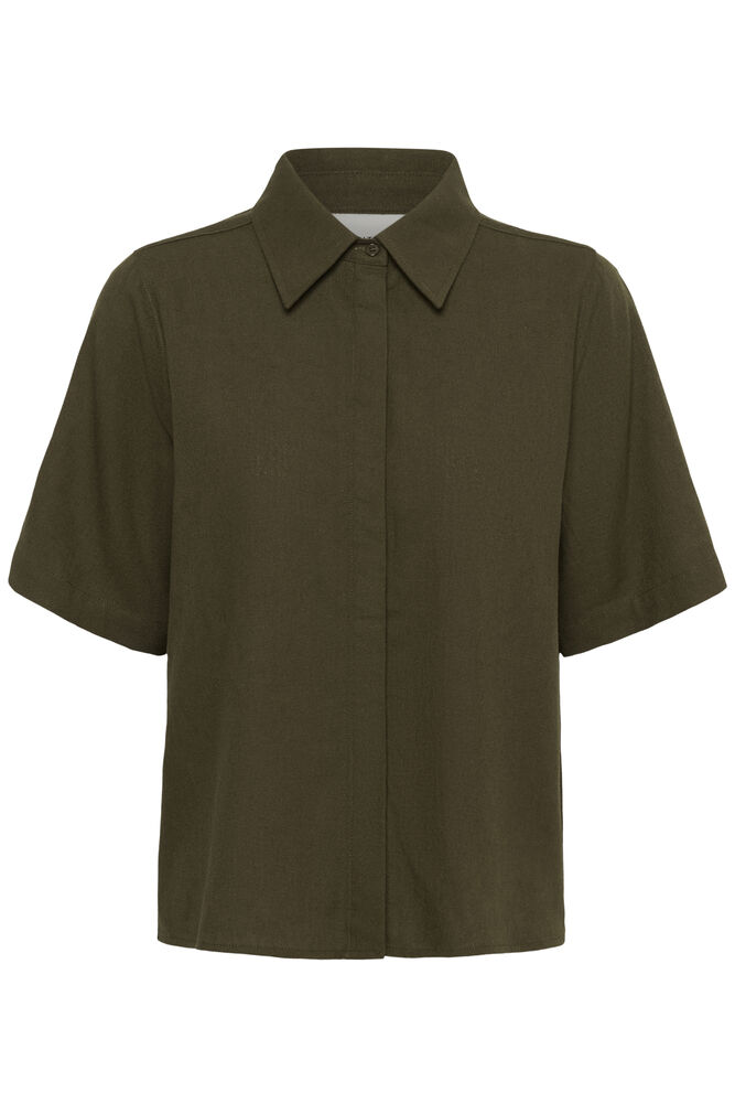 Boxy blouse met korte mouw.