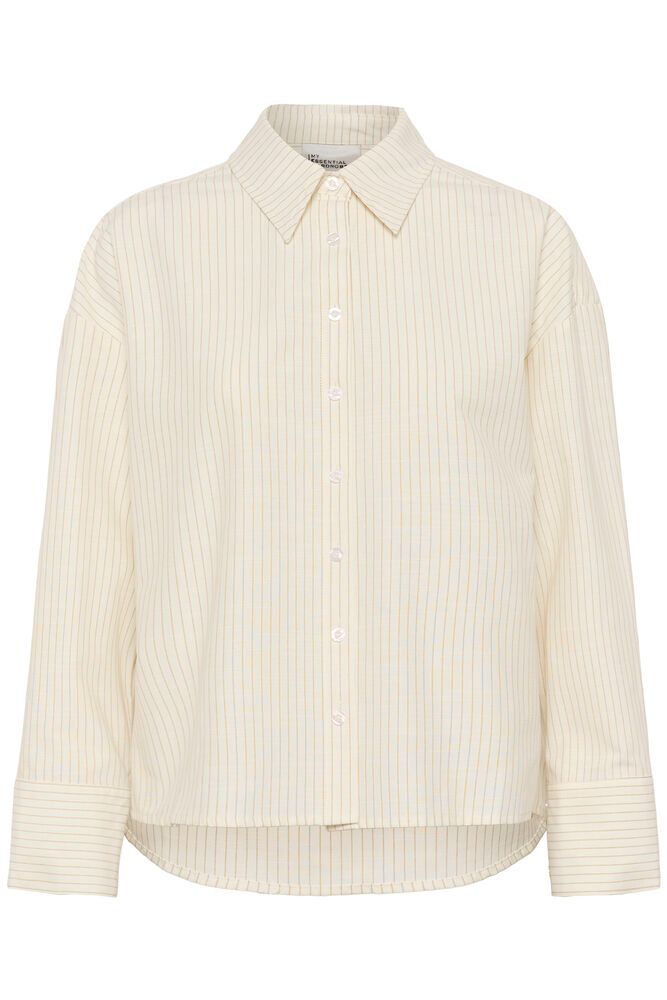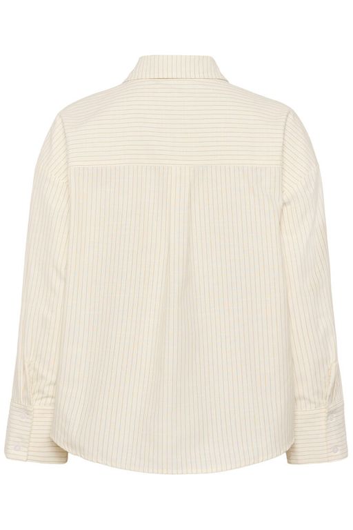 Boxy blouse van geweven kwaliteit in ecru wit met fijn army green streepje.