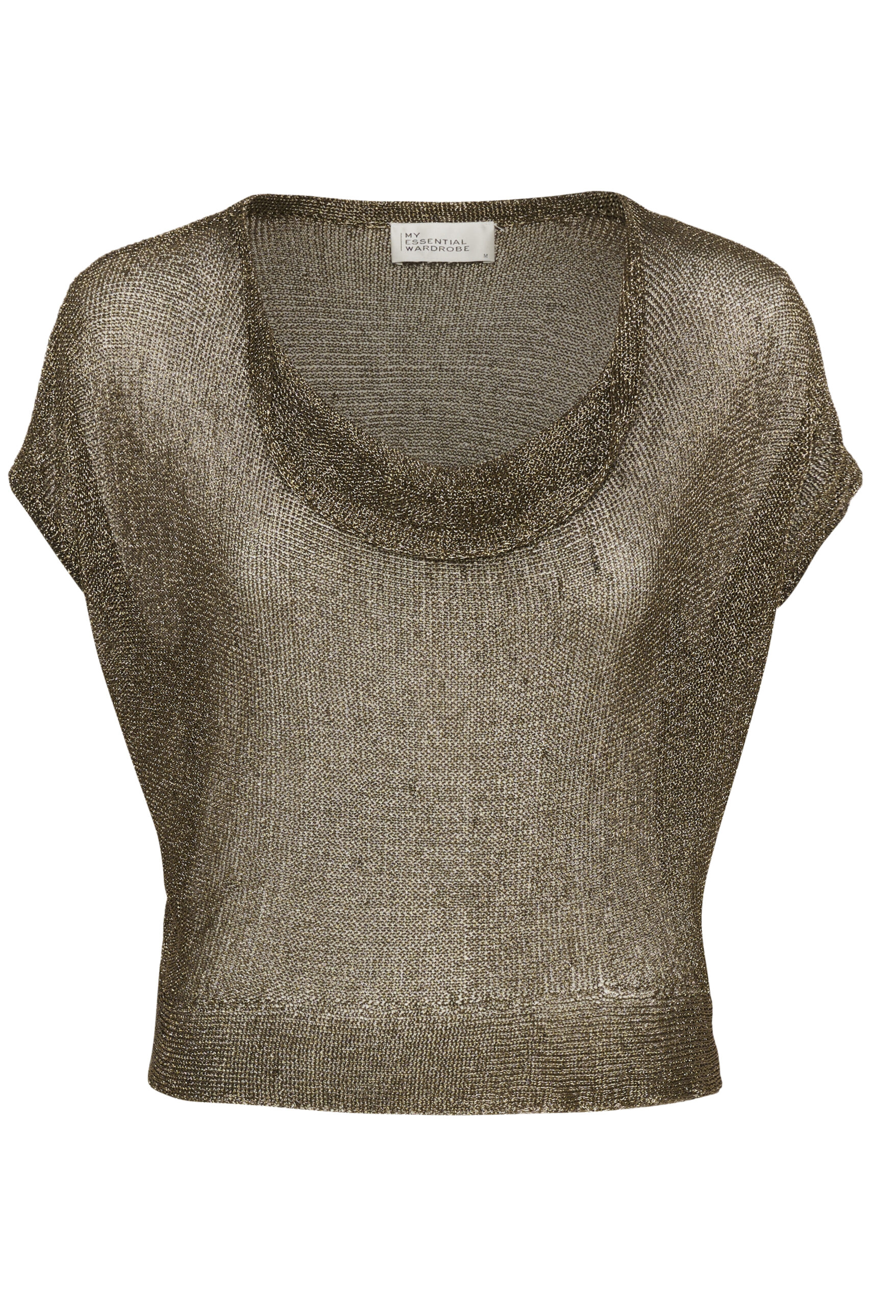 MWOlly Knit Waterfall Top – Black Amber Metallic