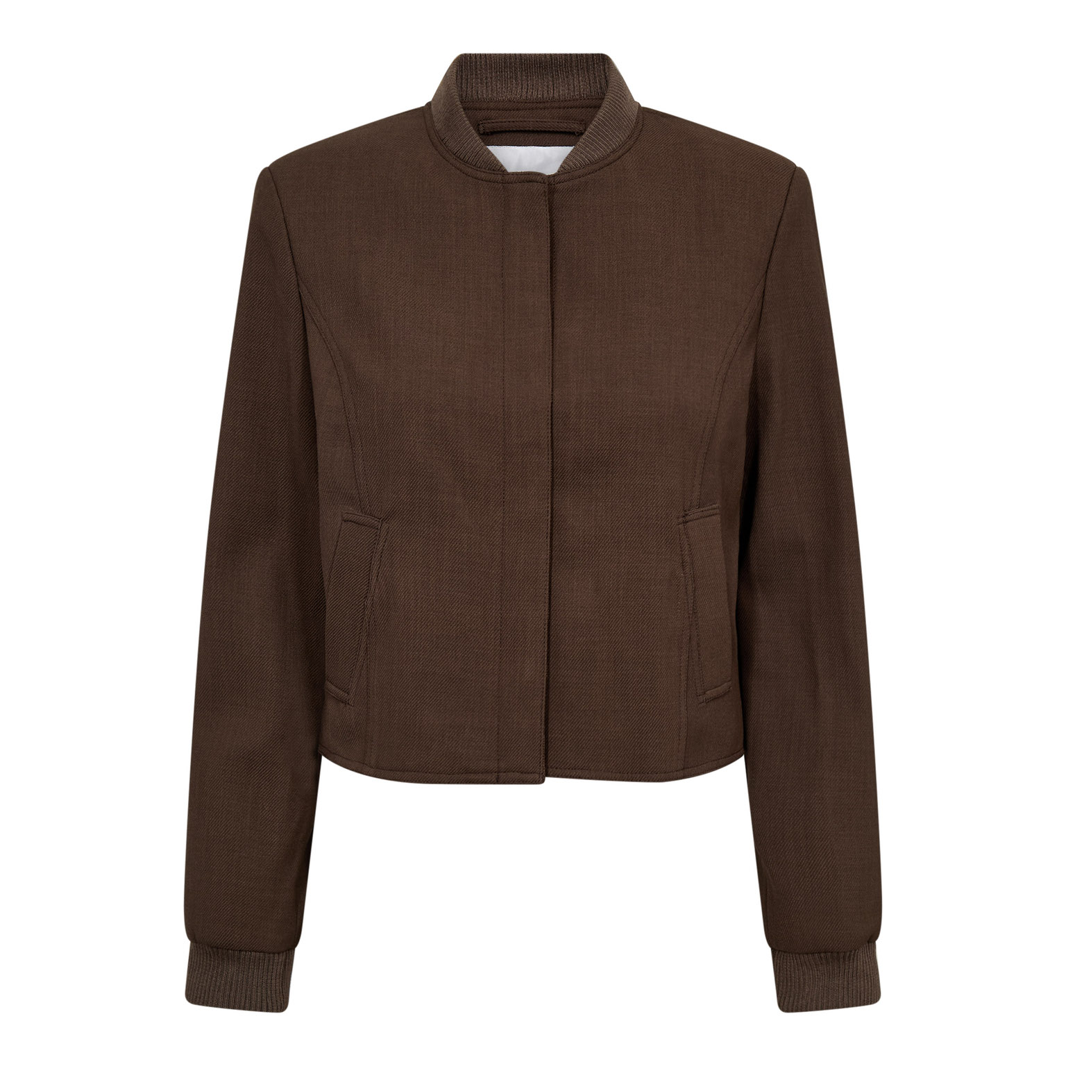Deze cropped bomber in de warme walnut tint is de match met je high waist jeans of een