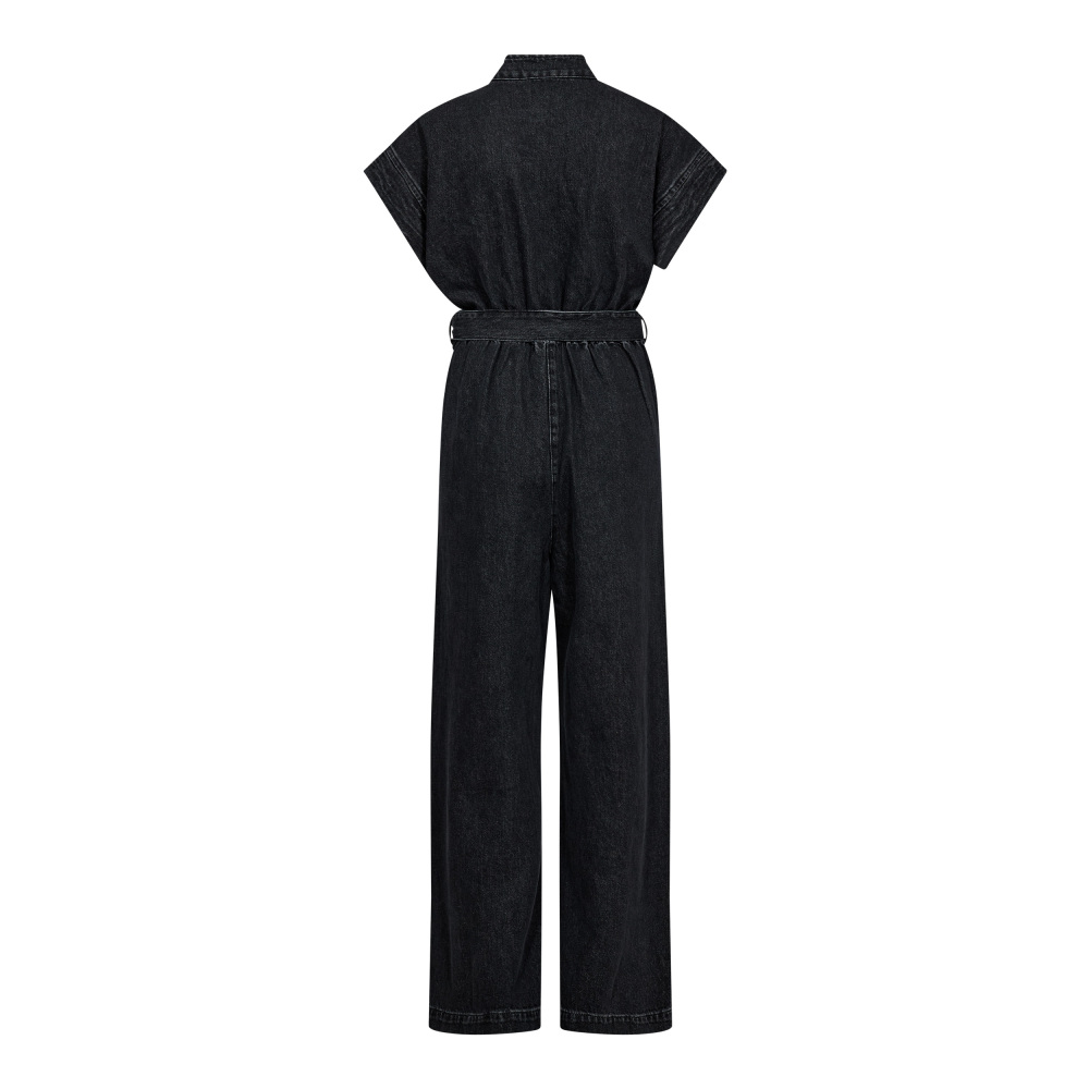 Dit toffe zwarte denim jumpsuit is een echte power piece! De stoere zip-sluiting en flatterende pasvorm geven een moderne, edgy look.