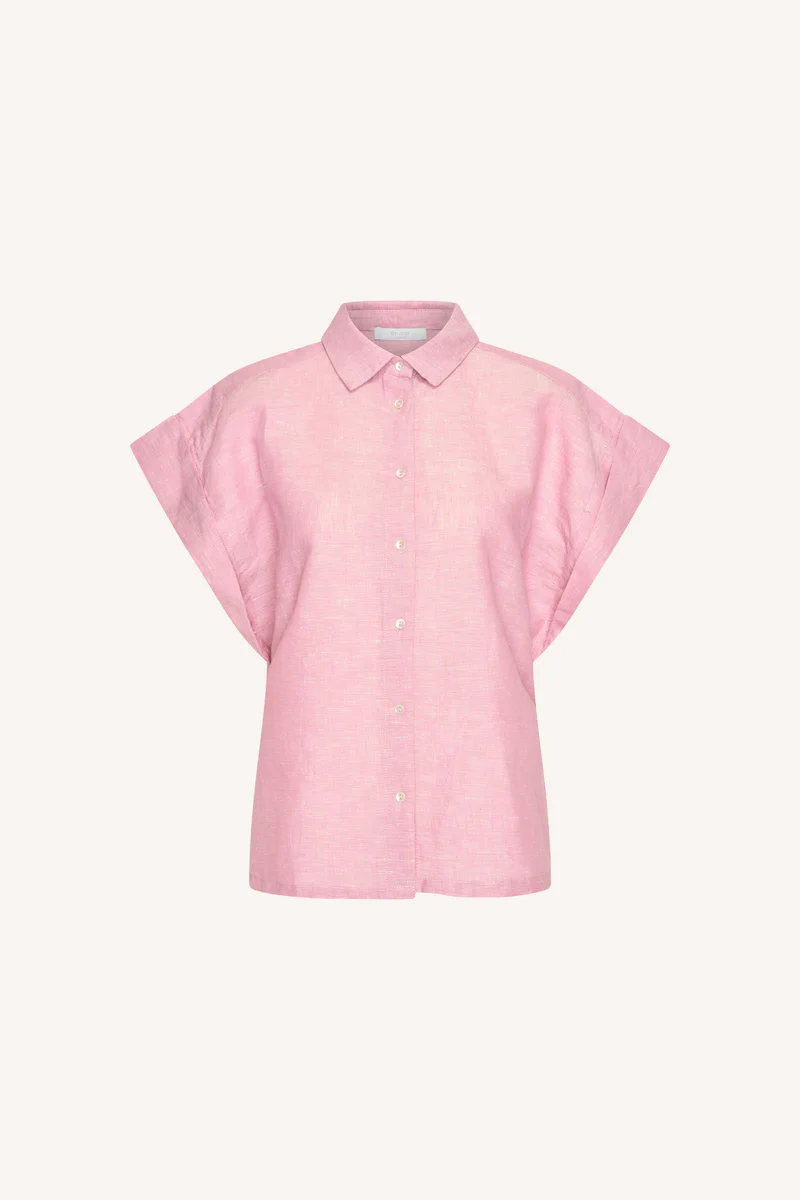 De pixie linen blouse is een casual top met een comfortabele normale pasvorm en korte mouwen. Dankzij de klassieke kraag en knoopsluiting is deze blouse eenvoudig te combineren voor een stijlvolle, ontspannen look. Gemaakt van luchtig linnen, perfect voor warme dagen waarop je er toch verzorgd uit wilt zien.
