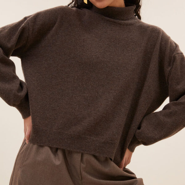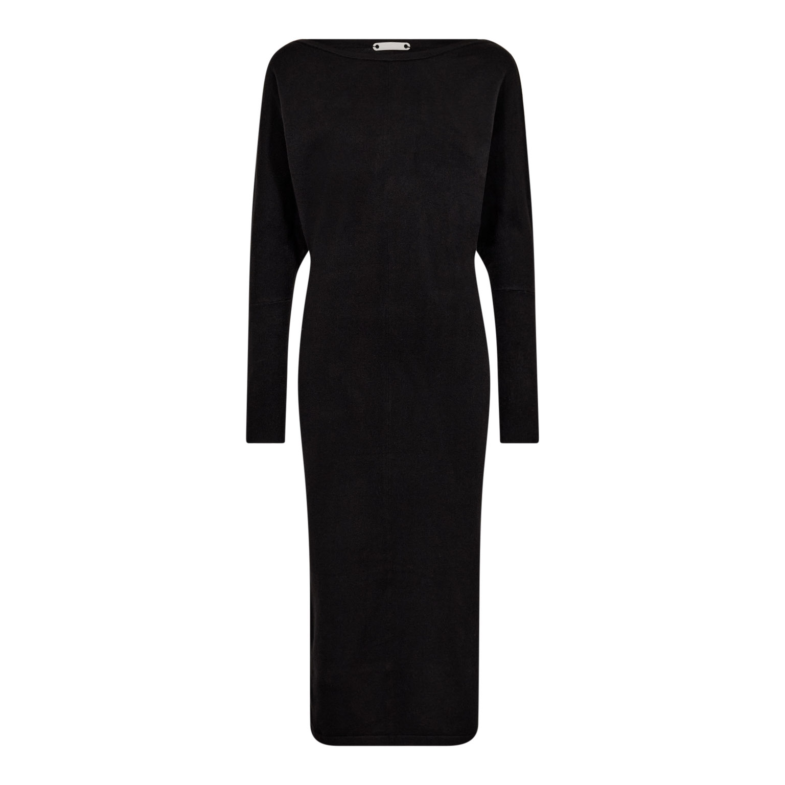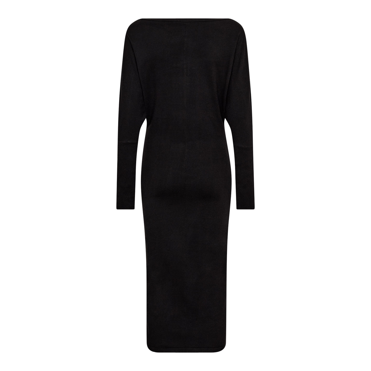 Aangesloten fijn gebreide lange jurk met lange vleermuis mouw.
