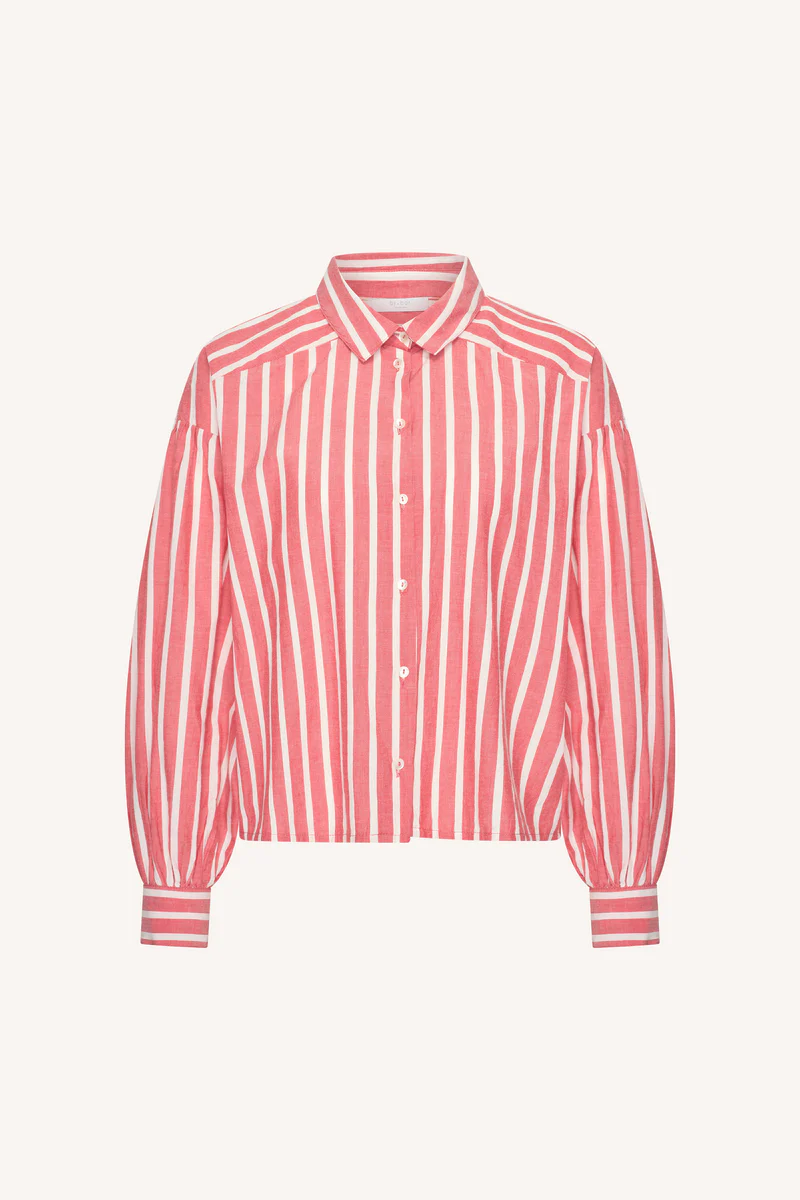 De sarah short stripe blouse combineert een casual uitstraling met duurzame productie. Deze blouse heeft een losvallende pasvorm en een korte fit, perfect voor een ontspannen, moderne look. Dankzij de klassieke kraag en knoopsluiting draag je dit item moeiteloos. De lange mouwen en het gestreepte patroon maken het een veelzijdige toevoeging aan je garderobe.