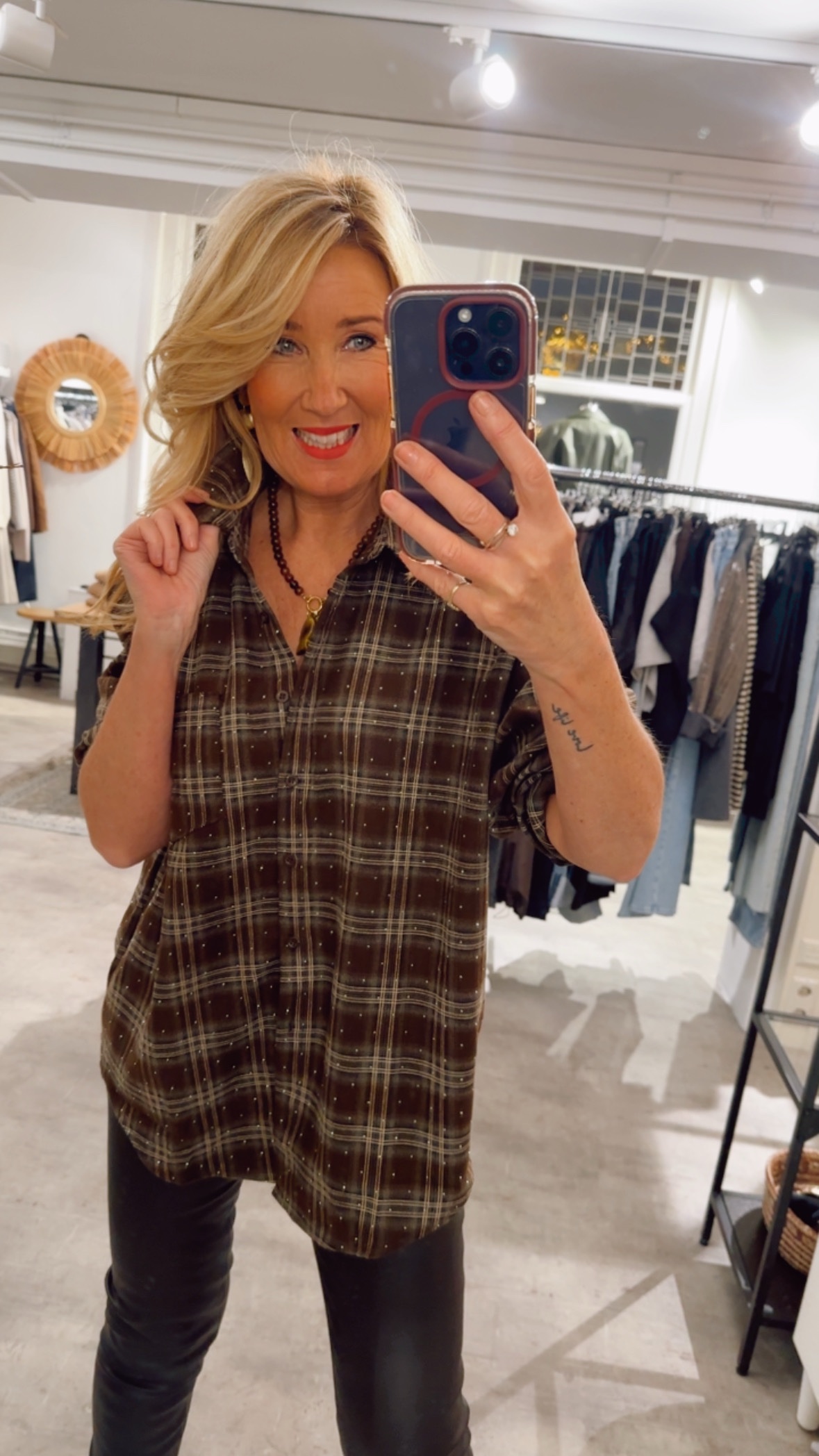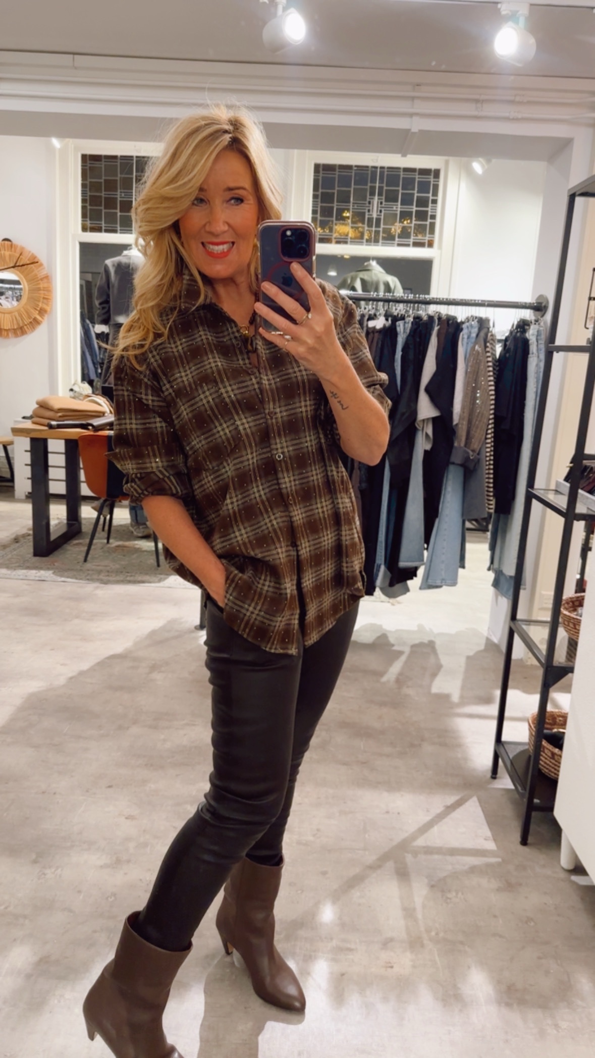 Sparkle Check Blouse – Brown/Black
