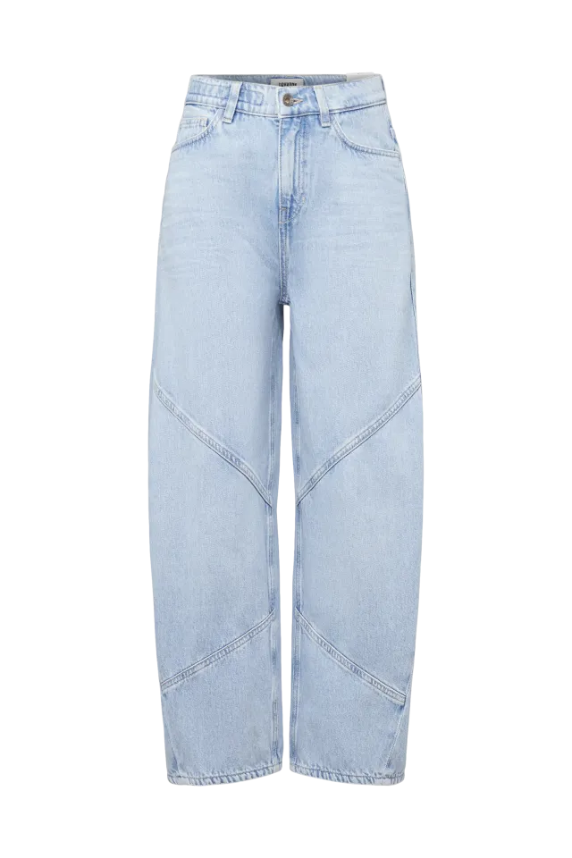 SWORE is een verkorte jeans met een casual pasvorm en een middelhoge taille. De kenmerkende O-vormige silhouet ontstaat door gebogen zijnaden en opvallende delingen. De klassieke 5-pocketconstructie maakt het ontwerp compleet. De vormvaste indigo denim is gemaakt van 100% katoen en heeft een authentieke was in lichtblauw. Het zachte handgevoel zorgt voor een hoog draagcomfort.