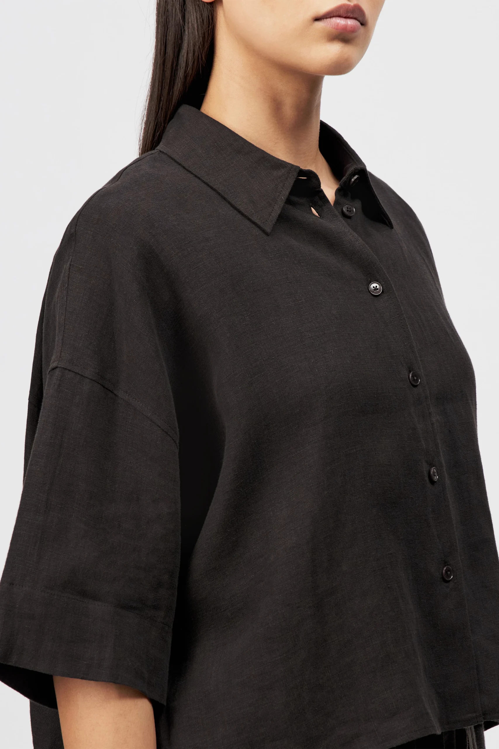 YARIKA is een boxy overhemdblouse in een oversized pasvorm. Ze heeft 3/4-mouwen, een knoopsluiting en zijsplitten in de zijnaden als fijn detail. De zomerse linnen stof biedt dankzij zijn natuurlijke eigenschappen een licht en aangenaam draaggevoel.