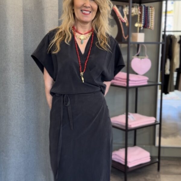 Milla Long Wrap Dress – Charcoal